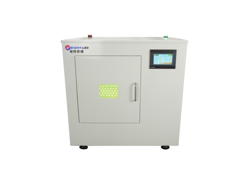 該uvled旋轉(zhuǎn)固化箱/烤箱/固化爐的發(fā)光面積位置及面積為頂部250mmx250mm,背部250mmx250mm,波長395nm。