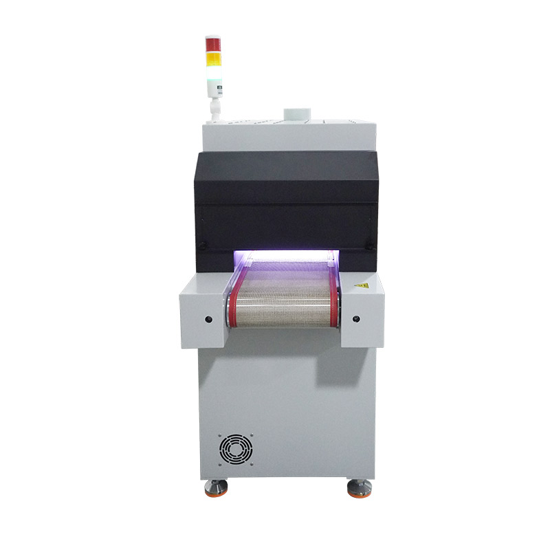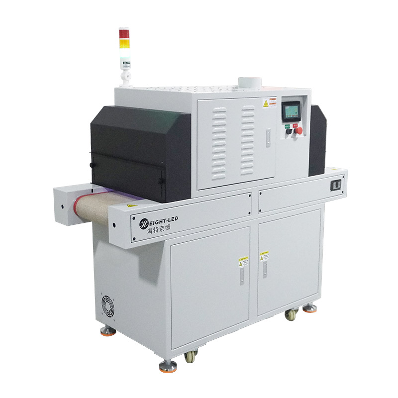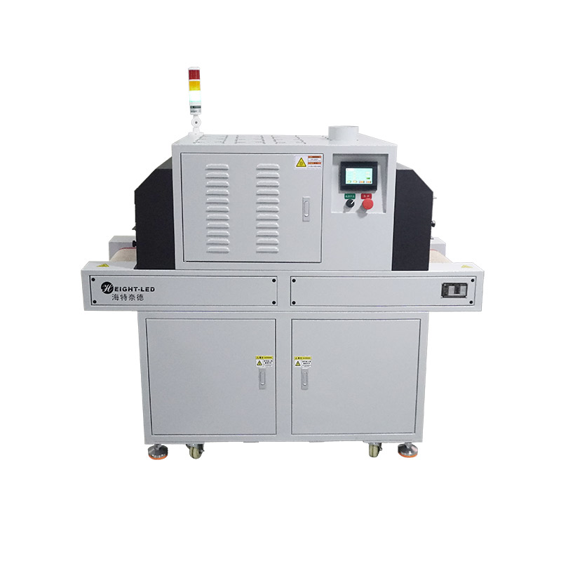2、設(shè)備提供連續(xù)模式和后端模式、步進(jìn)模式可選,連續(xù)模式下,點擊啟動按鈕,UV機(jī)傳送帶及 UVLED一直工作,點擊停止按鈕停止UV機(jī)工作;后端模式下,點擊啟動按鈕,UV機(jī)傳送帶及UVLED開始工作,當(dāng)后端傳感器感應(yīng)到產(chǎn)品后,傳送帶及UVLED停止工作,當(dāng)產(chǎn)品拿走后繼續(xù)進(jìn)入下一個循環(huán);步進(jìn)模式下,點擊啟動按鈕,UV機(jī)傳送帶開始工作,當(dāng)步進(jìn)傳感器感應(yīng)到產(chǎn)品,傳送帶停止運(yùn)行,UVLED以步進(jìn)參數(shù)工作,步進(jìn)參數(shù)運(yùn)行完成后,UVLED關(guān)閉,傳送帶開始工作,當(dāng)后端傳感器感應(yīng)到產(chǎn)品時,傳送帶停止工作,當(dāng)產(chǎn)品拿走后繼續(xù)進(jìn)入下一個循環(huán)。