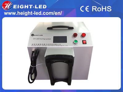 The UV-LED curing system adopts the LED lighting method, include controller and portable uv led head,with 395nm wavelength, curing area is 520x15mm, fast curing for the uv paint and uv ink on floor,the bottom is equipped with wheels for easy movement。