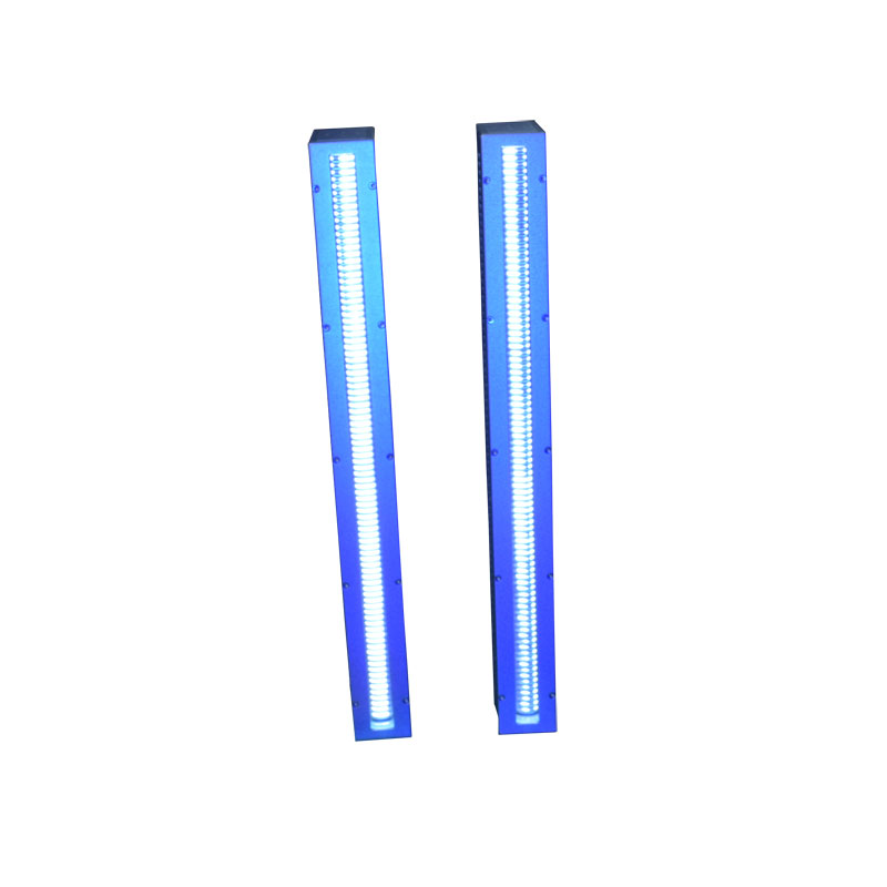 High-performance UVLED line light source curing system, the system mainly includes a controller, UVLED irradiation head and connecting wires. The UVLED irradiation head is integrated with imported high-intensity UV LEDs, using forced air cooling, and the effective curing area is 500*20mm adjustable. It supports external signal input and triggering, and can be equipped with semi-automatic or fully automatic production lines. LEDs of different wavelengths and powers cure different UV glues, UV inks, UV varnishes, UV paints, etc.