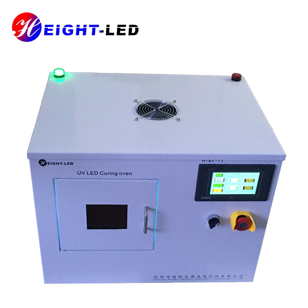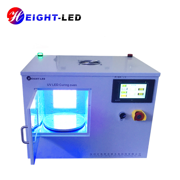 一款針對UV膠粘劑固化設(shè)計的高性能UVLED光固化系統(tǒng),該系統(tǒng)采用箱式結(jié)構(gòu)內(nèi)部放置UVLED照射頭及控制板,外加可透視窗口。共有兩個出光面,頂部出光面積200X200mm,側(cè)面出光面積為150X120mm,UV光譜波長為365nm,采用強(qiáng)制水冷散熱,支持外部信號輸入及觸發(fā),箱門處裝有傳感器,關(guān)門燈亮關(guān)門即滅,底部裝有轉(zhuǎn)盤,可根據(jù)需要調(diào)整轉(zhuǎn)速,保證受光均勻度及異型件側(cè)面點(diǎn)膠位置的UV固化能夠充分進(jìn)行。