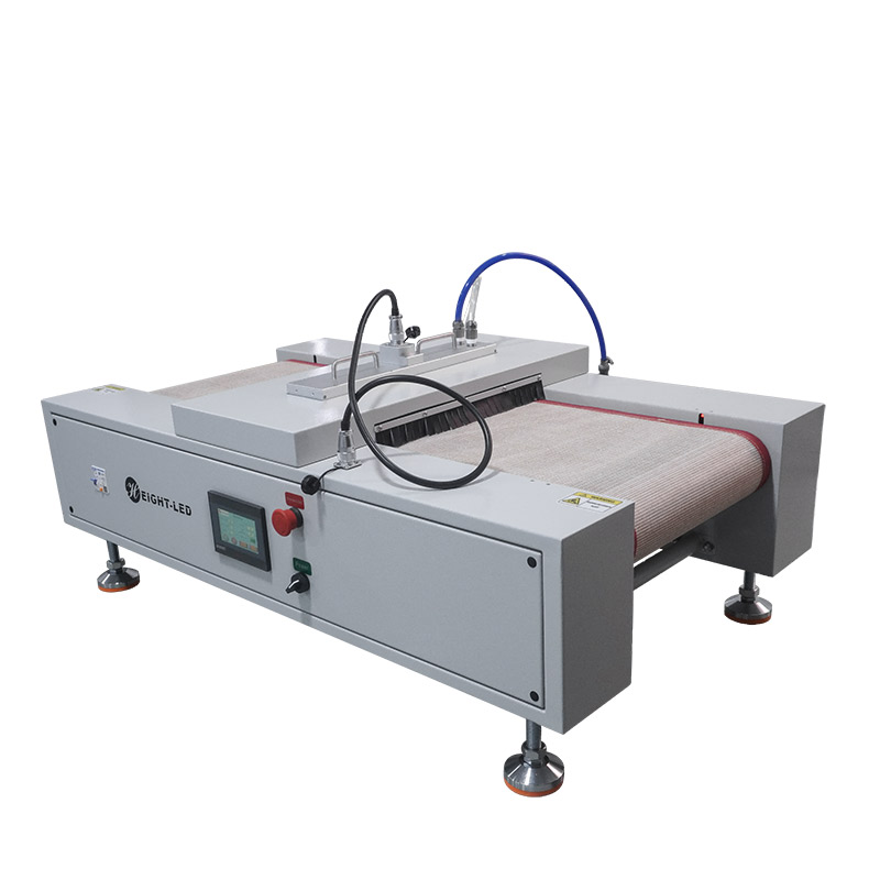機傳送帶及UVLED開始工作,當(dāng)后端傳感器感應(yīng)到產(chǎn)品后,傳送帶及UVLED停止