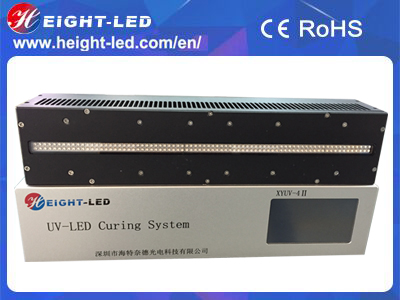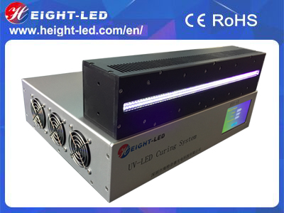 This is a high-performance UVLED  curing system, the system includes the controller, UVLED irradiation head and cable. UVLED head with imported high-intensity UV LED integrated UV spectral wavelength of 365nm, 385nm, 395nm, 405nm, the use of forced air cooling, the effective curing area of 350X10mm, support for external signal input and trigger, can be equipped with semi-automatic or fully automated production line .