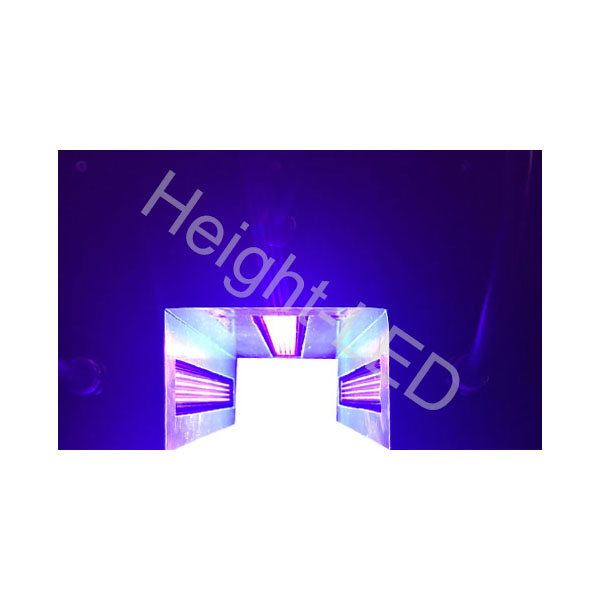 三面出光,頂部及左右兩側(cè),照射面積都是300x20mm,頂部395nm,兩邊365nm,散熱方式:風(fēng)冷